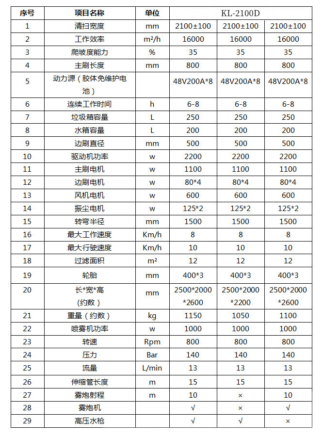 KL-2100D三輪高壓清洗霧炮掃地機(jī)